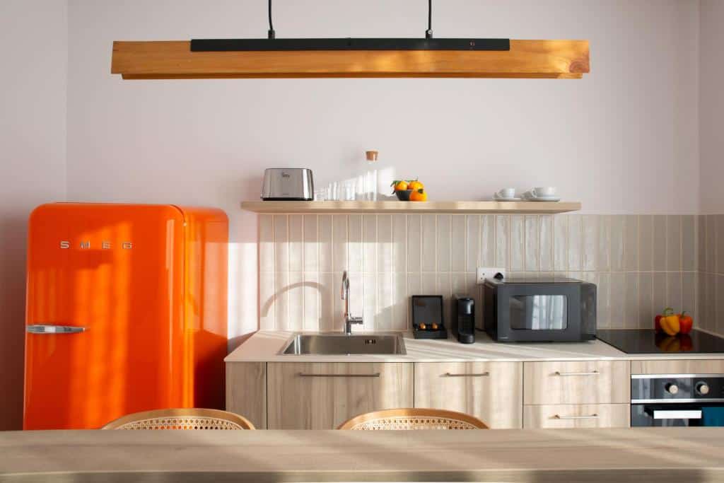 כן – מאובזר לגמרי: מקרר גדול, כיריים, תנור, כלים, מכונת קפה.