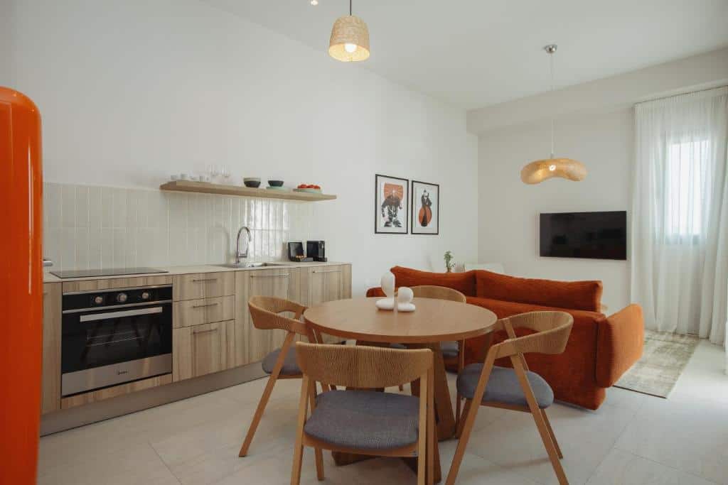 סוויטות מרווחות, אידיאליות למשפחות או זוגות, עם חדרי שינה נפרדים, סלון נוח, מטבח מצויד ומרפסת שמש פרטית עם נוף רגוע.